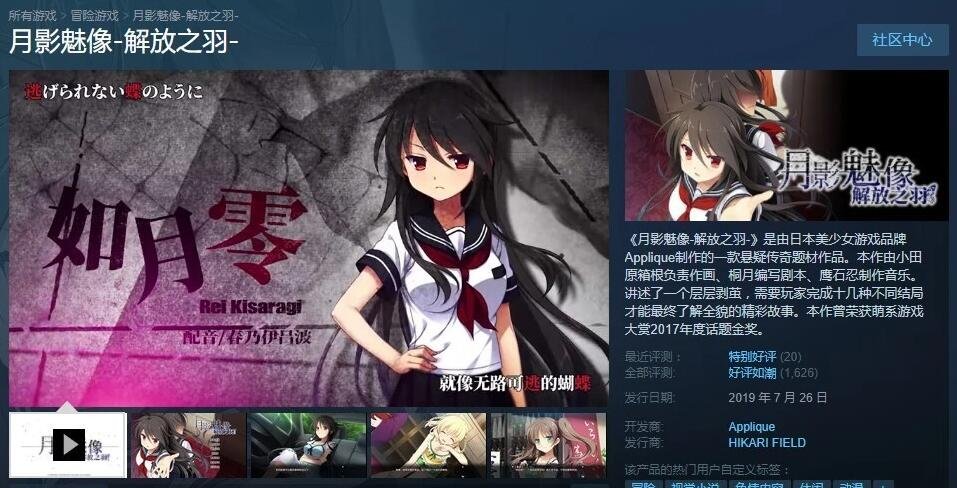 《月影魅像-解放之羽-》是由日本美少女游戏品牌Applique制作的一款悬疑传奇题材作品。