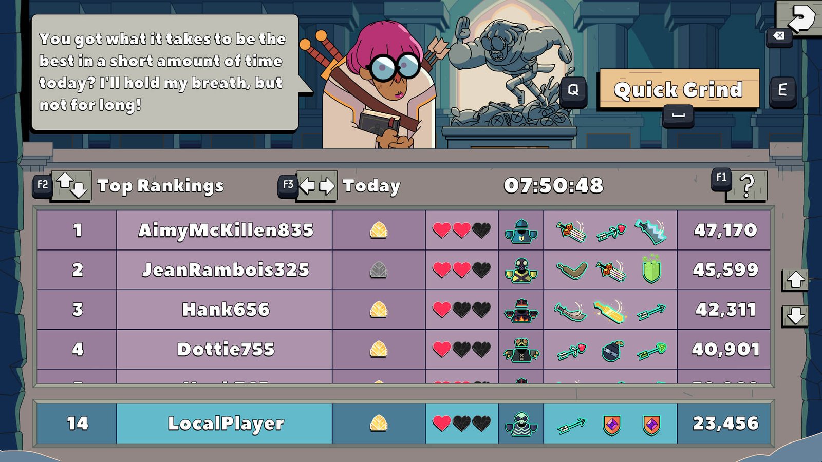 在这款来自CAPY的驰名解谜战斗游戏中,击倒杂鱼来取得巨大连击数,获取珍贵的磨练石(Grindstone)吧。打造全新装备,在你攻略磨练石之山(Grindstone Mountain)的旅程中直面狡猾的敌人,障碍和头目战,并在每日排行榜上证明你的能力。