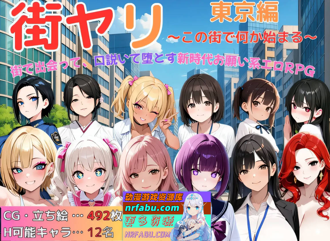 ◆登场角色&H场景 本作中登场的女主角共有12名。包含6名主要角色和6名次要角色,所有角色都有H场景。从职场OL、清纯系到辣妹、人妻、学生、偶像,各式各样的女孩充斥街头。