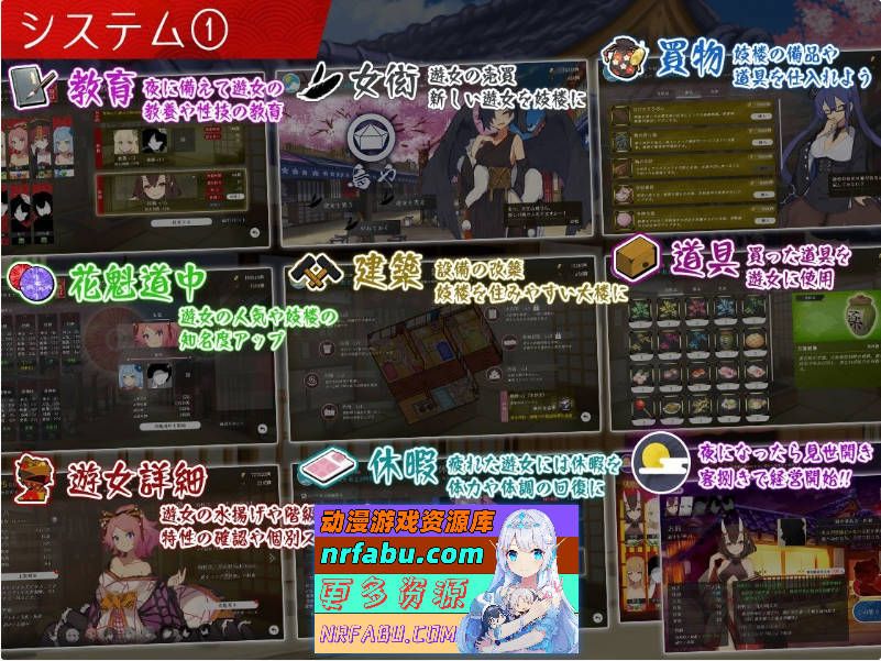 ・可能的行动:教育/女中介/购物/花魁道中/建筑/道具/游女/休假