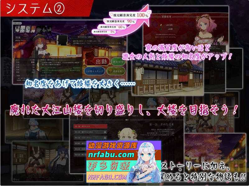 通过女中介招募游女,或者教育所属游女,通过花魁道中赚取游女的人气等,白天是可以自由行动的时间。