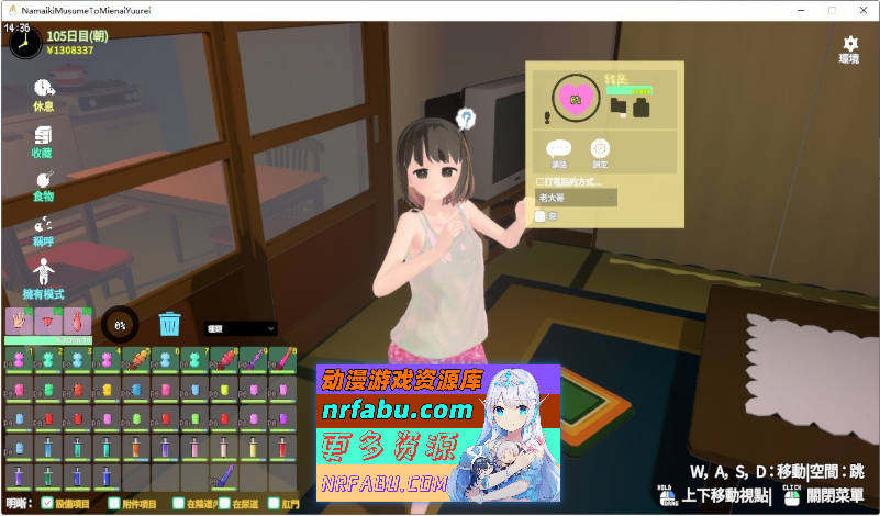 女孩会根据心情行动,您也可以自由移动互动。