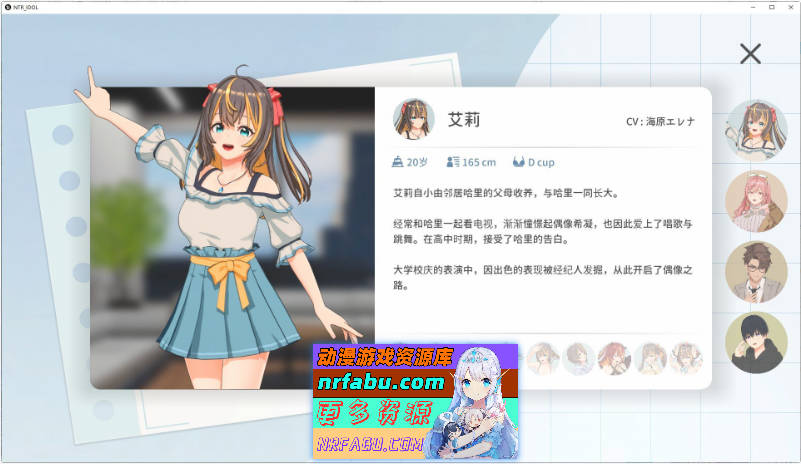 玩家作为经纪人,前往大学发掘了一位具有偶像潜力的新人「艾莉」。